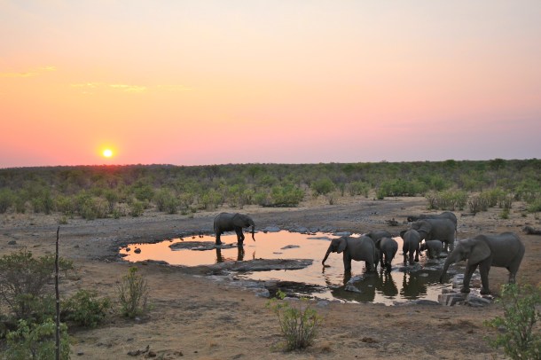 - 6pm-8pm -drinking wine, taking in a fiery sunset and watching rhinos, elephants and leopards at the waterhole.