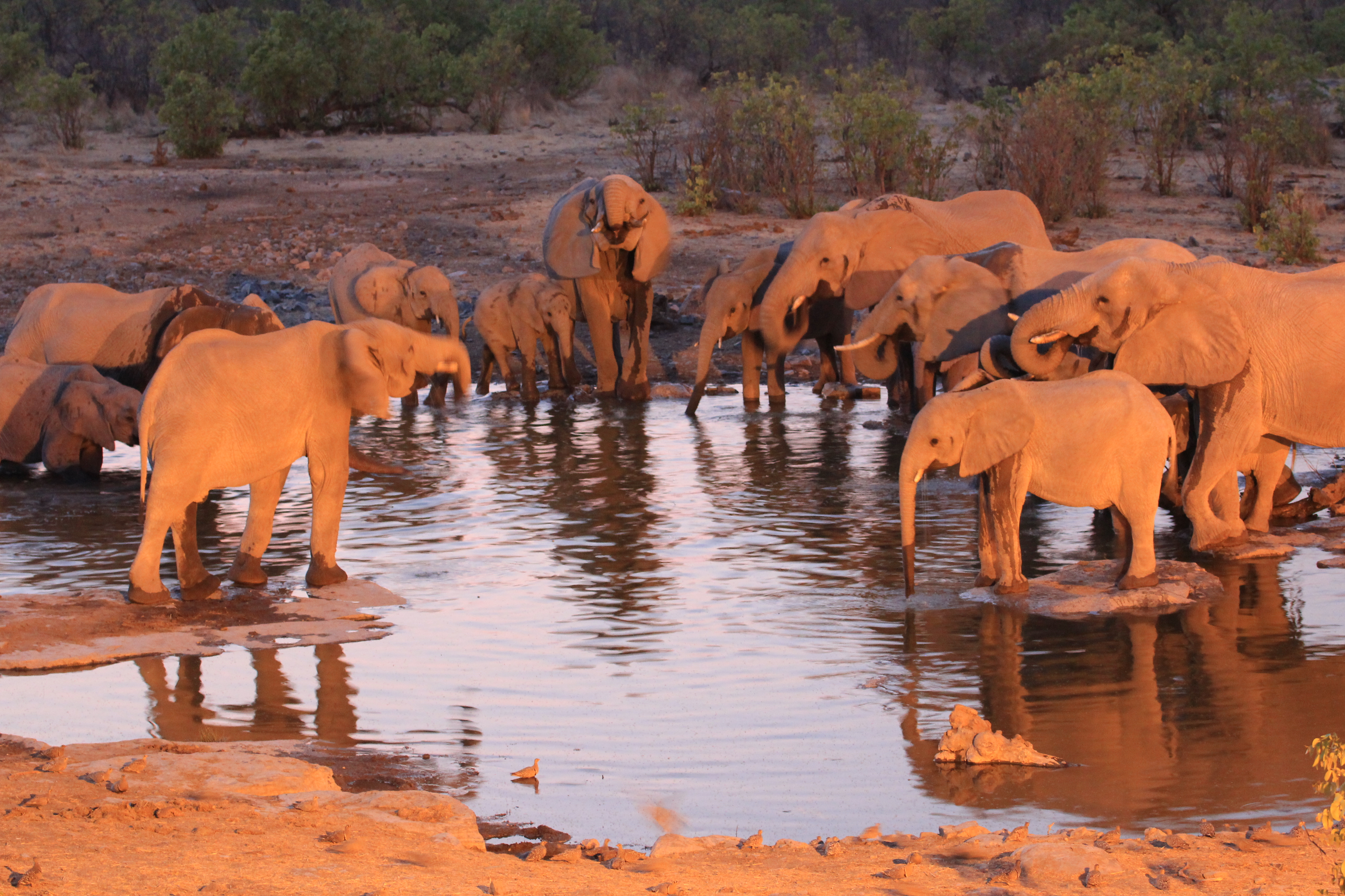 Next Previous Elephants at a waterhole April 1, 2013 5184 × 3456 The floodlit Halali waterhole at night was always busy with elephants.