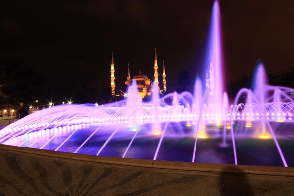 20131007-111656.jpg The Blue Mosque and Aya Sofia are separated by a park that is filled with tourists by the day, but surprisingly empty at night during a rain storm.