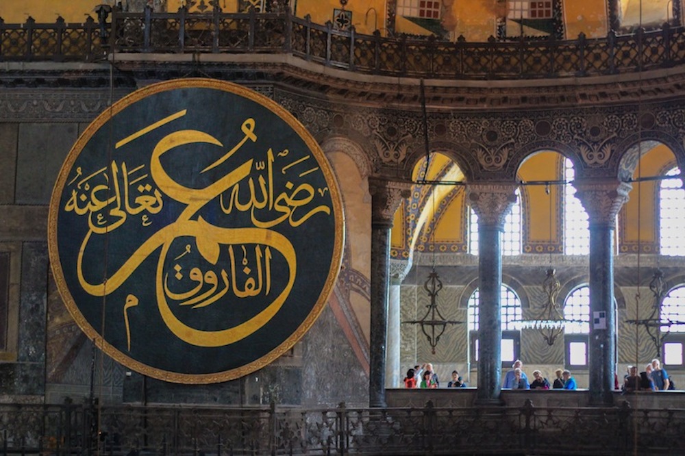 Aya Sofya Medallion December 15, 2013 1000 × 666 One of several giant Medallions with Arabic Script in the Aya Sofya. That is just cool.