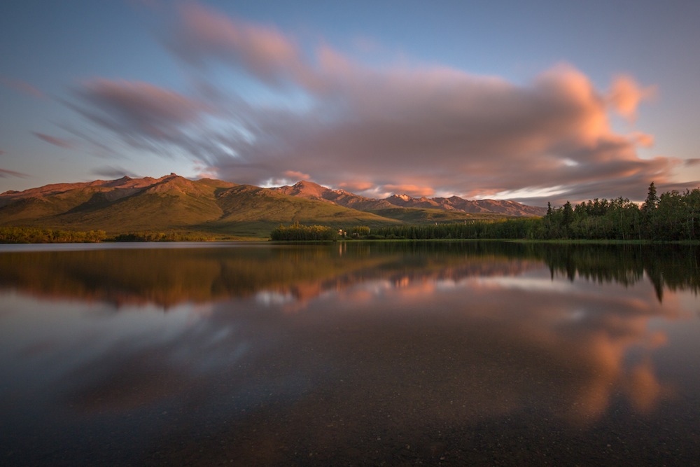 Taken from the same spot as #2. I blurred the clouds slightly with a neutral density filter. Otto Lake has the best sunsets in Denali due to the weather patterns and position on the north side of the mountains.