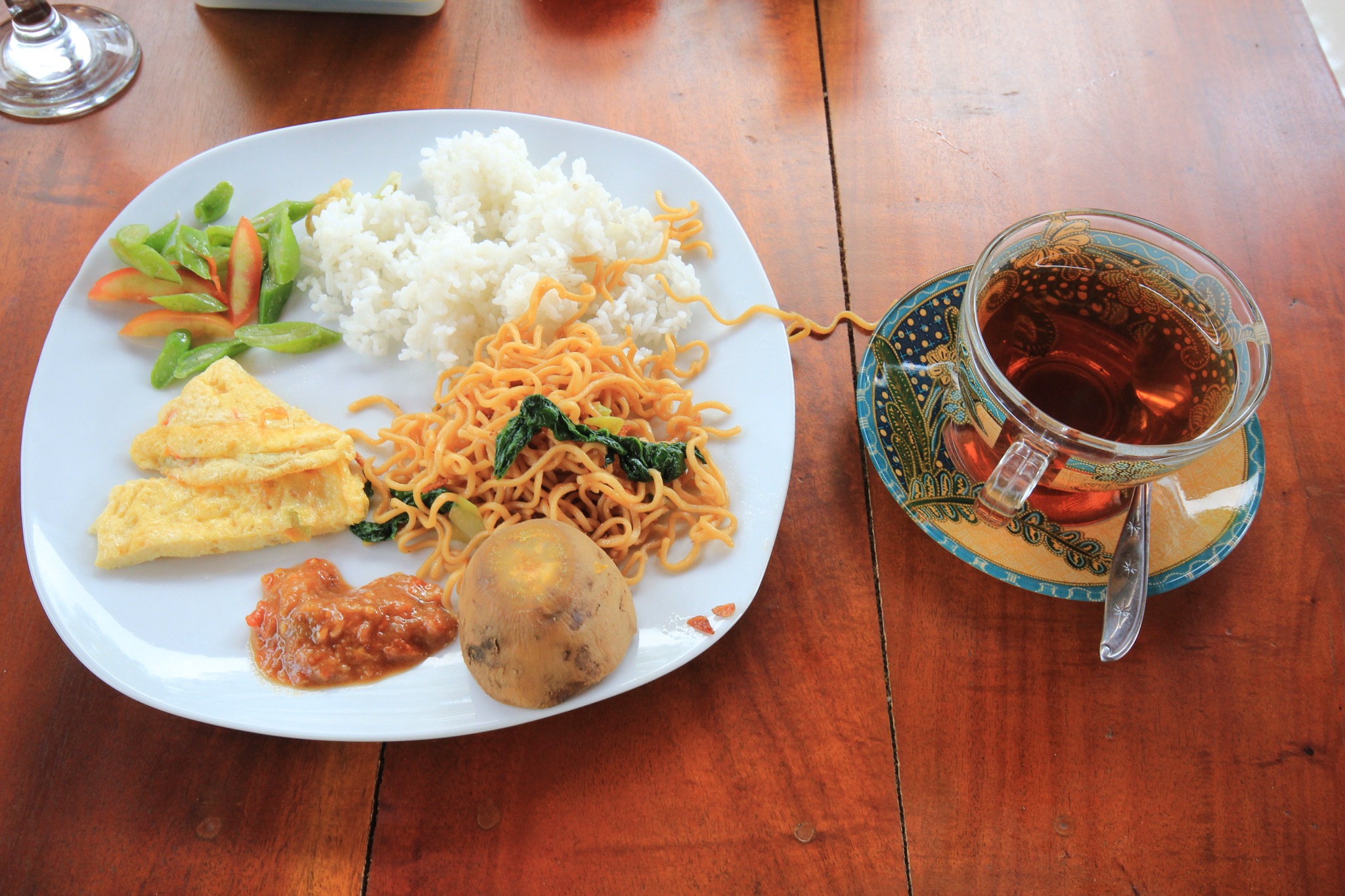 3. Fried rice, stir fried veggies, omelettes, fish and assorted juices for breakfast. This is my kind of country.