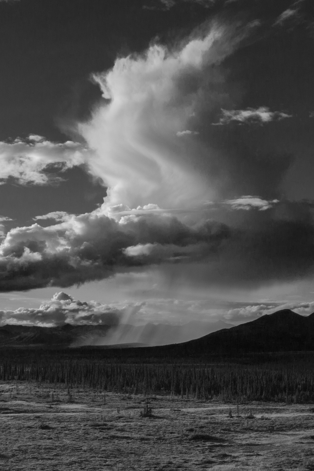 Rain shafts Denali Highway August 21, 2014 1000 × 1500 Rain falls from an isolated cloud on the Denali Highway.