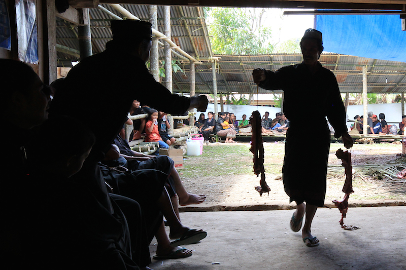 Buffalo meat is distributed to the families.