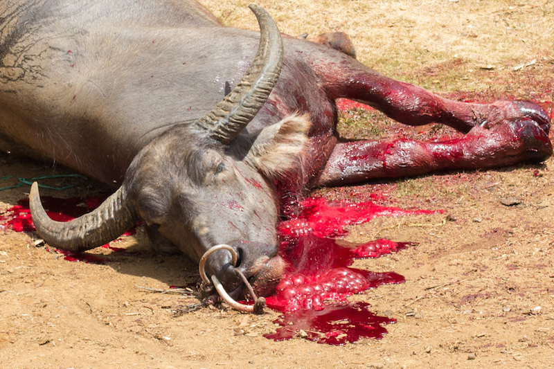 Tana Toraja Animal Sacrifice April 5, 2015 800 × 533 A buffalo finally dies after having his throat slit.