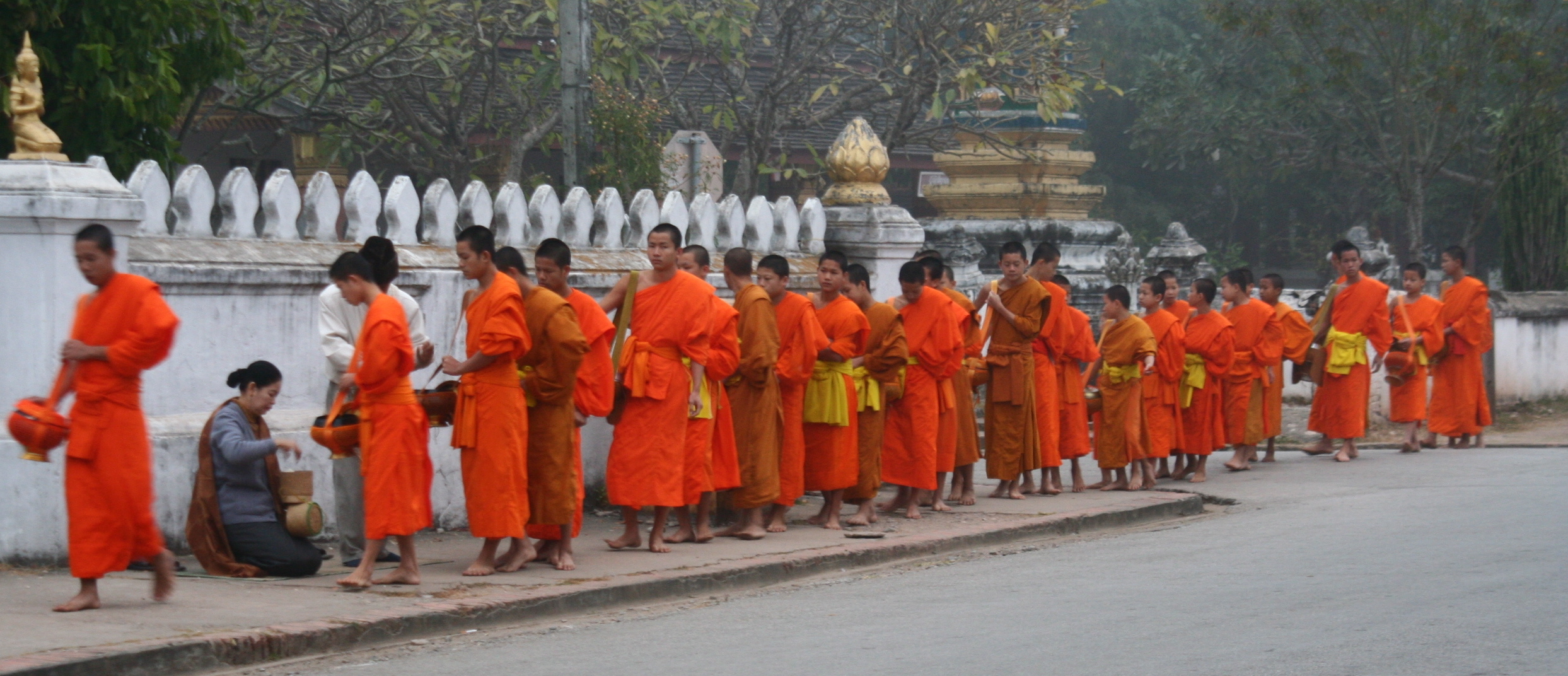 Sometimes, in order to get an overview of the scene and to avoid offending the locals, it is best to stand back. Take the photo below as an example. By standing back, I got a long line of boys queuing up for alms. Getting closer would have been rude and wouldn’t have captured the moment as well.