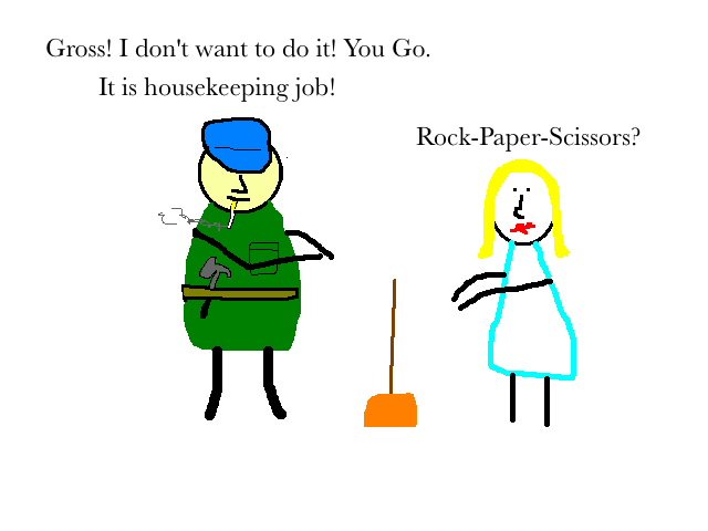 Hehe…lovely cartoons😃 I worked as a house keeper several summers and can definitely relate. One hotel I worked at had this problem sorted out well. If there was any nasty stuff that needed to get cleaned (nasty = anything with origin from the human body) there was an addition to the pay. Everyone wanted to clean up that stuff😄