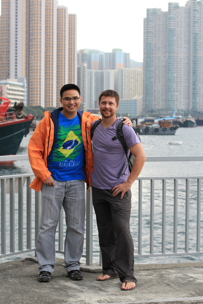 We parkoured our way back to the ferry terminal and over to Kowloon to have sunset drinks. We found a place on the promenade with great views of Hong Kong Island and drank a couple of beers while talking. Although there was a language barrier because James spoke English much better than we did, we chatted about Indonesia, travels, Alaska, life in Hong Kong, and future plans. Although from Asia, English is James’ first language. His parents thought it would be helpful for him to speak fluent English and thus only spoke it at home and sent him to an international school.