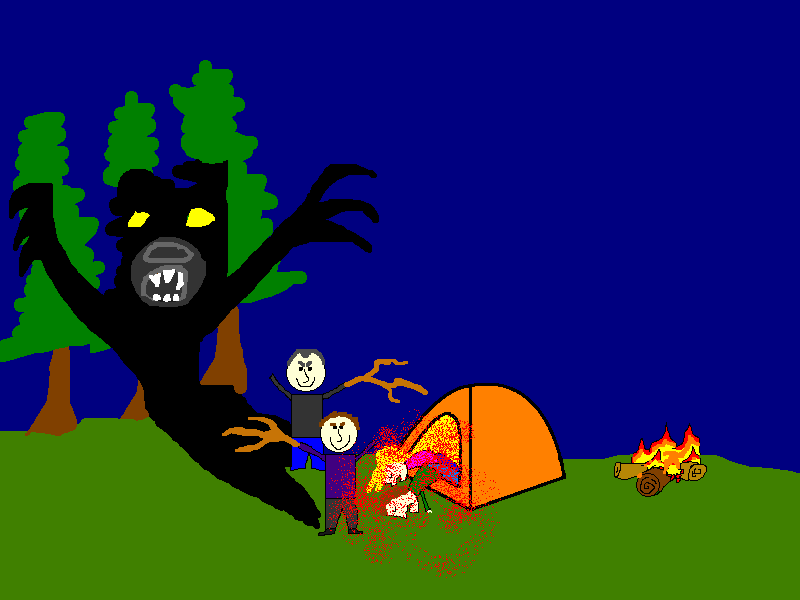 As we hit their tents with branches and stomped around, we hid our laughter as our friends began to feel the fear of the great outdoors.