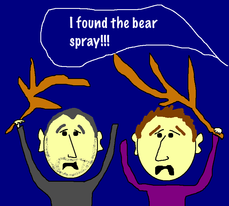 In the darkness the search was difficult. As fear ripped into them the screams elevated and now we heard “WHERE THE F*** IS THE BEARSPRAY?!?!?”