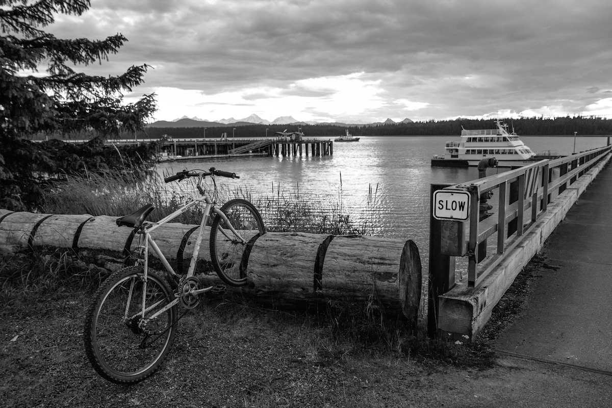 Black and white certainly does change the mood. I think I like the fireweed in black and white because it was stormy and grey that night – the flowers made it pop in the photo, but in real life the mood was ominous. The bike rack is one of my favs too. Thank you for your 2 cents!