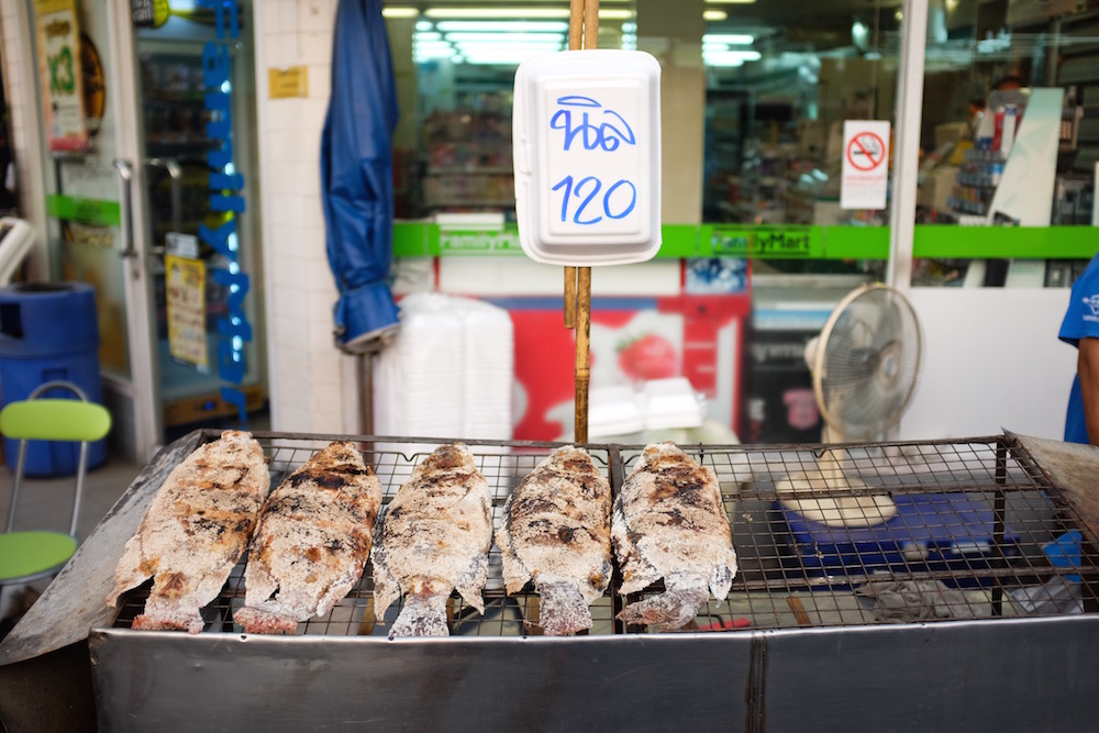 A big thing here is grilled fish, pork or chicken with sticky rice. That isn’t something you’d find in a Thai restaurant back home.