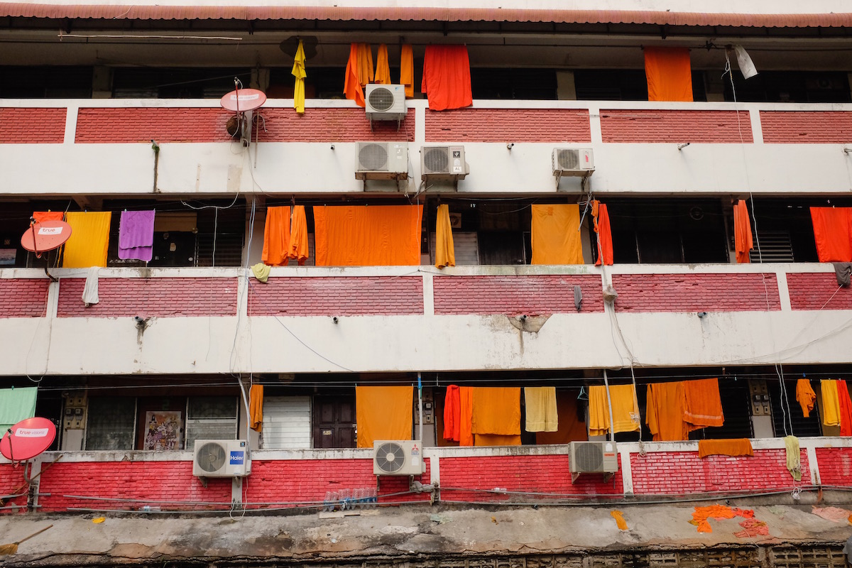 Certain sections of the city are gray and black with concrete and fumes, but among that there are potted flowers, Chinese lanterns and bright tuk tuks to give color.