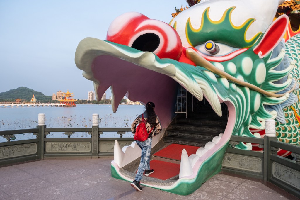 About 8% of Kaohsiung is public parkland, and my favorite park is Lotus Pond, famous for its stunning Buddhist temples. The Dragon and Tiger Pagodas are the most photogenic. Enter through the dragon’s mouth, walk through the ornate interior, and exit through the Tiger’s mouth for good luck. (By the way – it works. I did it repeatedly before the 2020 U.S. elections, and democracy lived another day.)