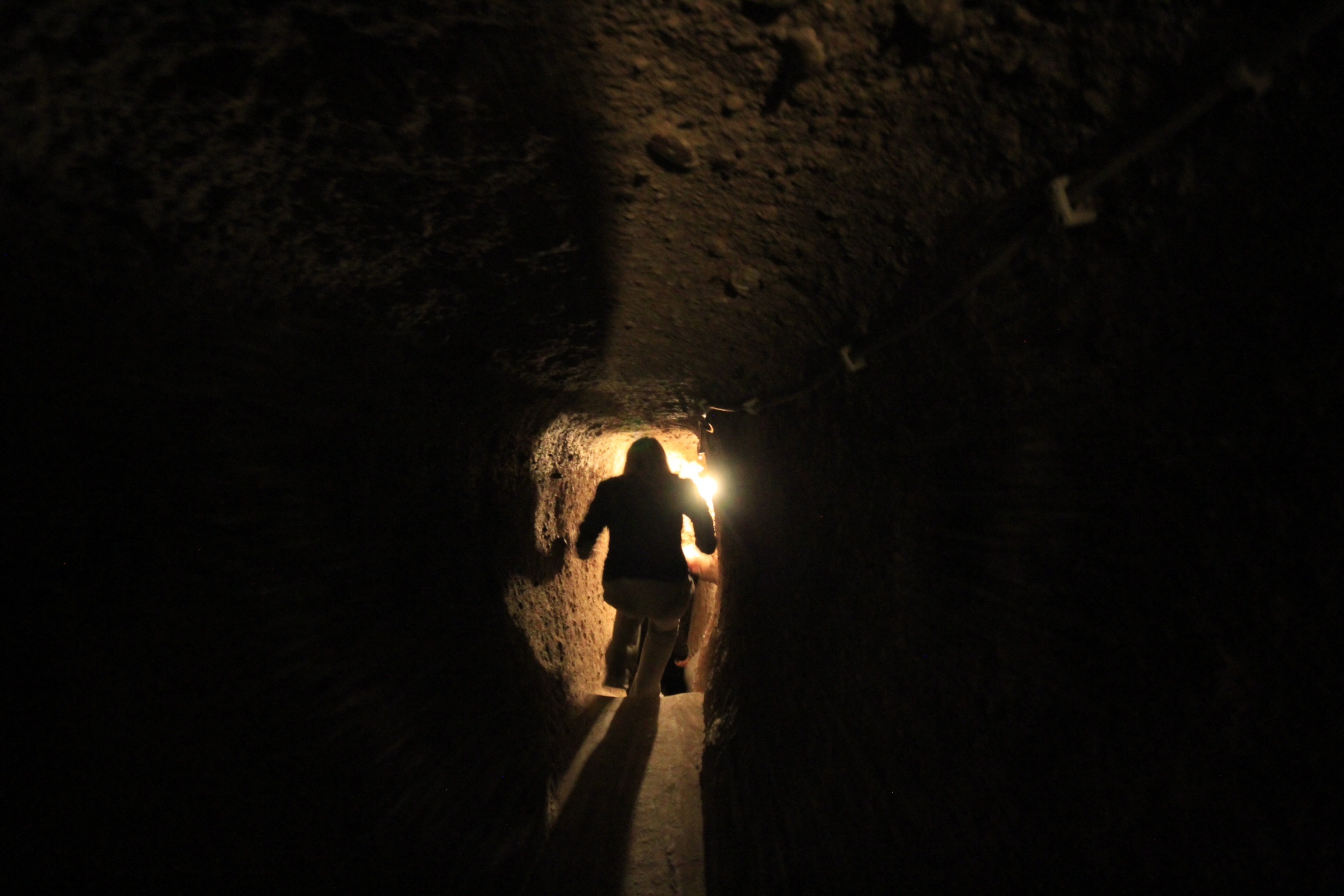 Kayseri Underground City October 13, 2013 2304 × 1536 Kristi crawls through one of the claustrophobia inducing passageways in the underground city.