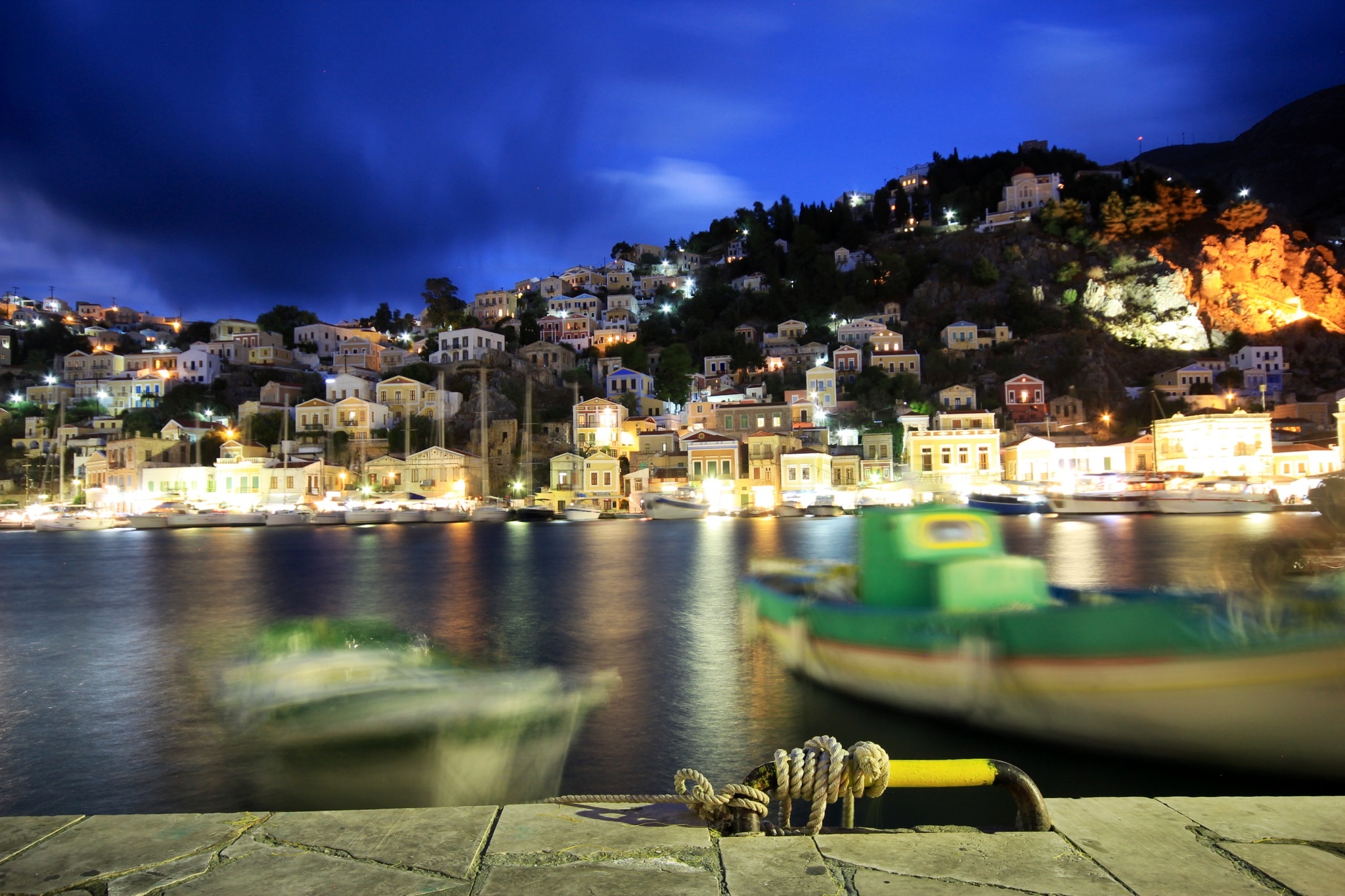 Symi at night October 19, 2013 2048 × 1365 Boats bob in the water during this long exposure photo of Symi at night.