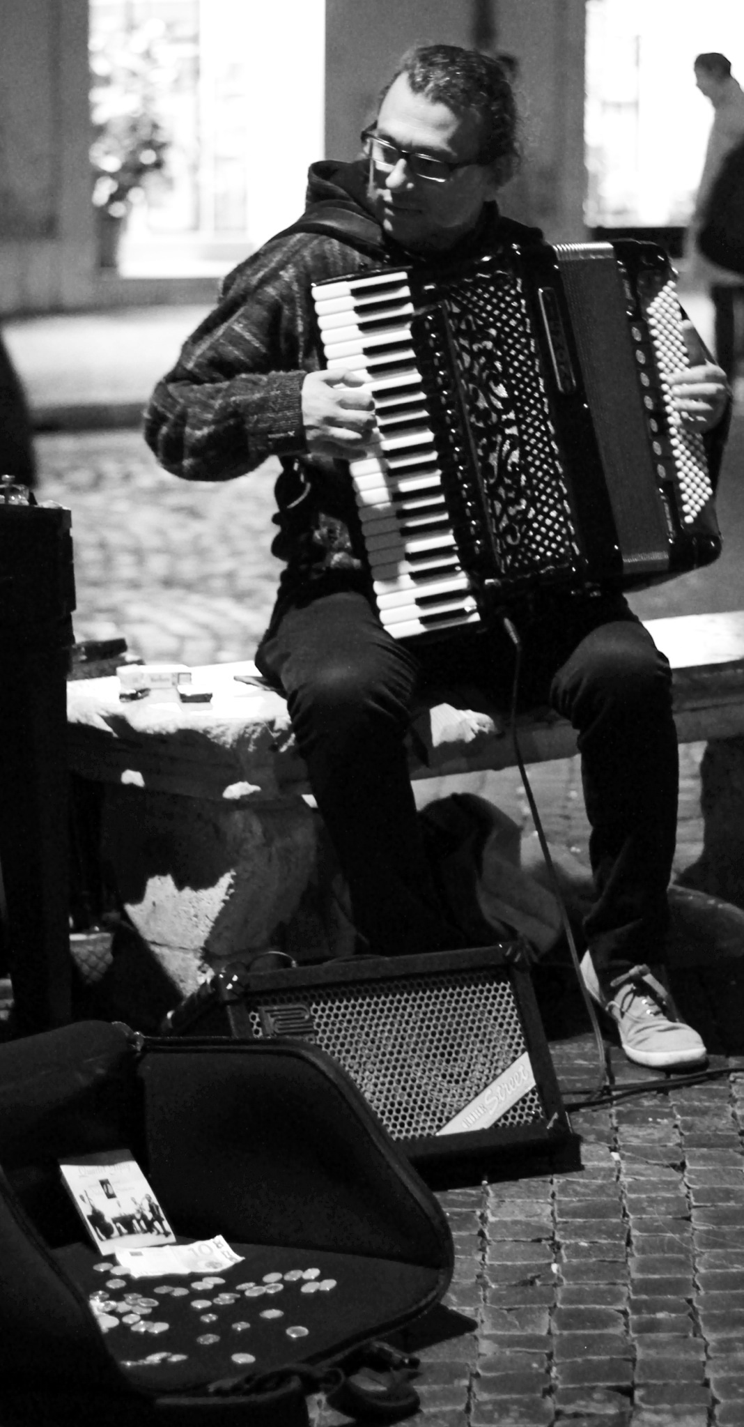 Accordion player Rome November 17, 2013 1068 × 2047 The accordion player, part of a 3-piece band (the other two members are cropped out) played each night in the Piazza Navona. They are from Romania and let me tell you, with a base, accordion and xylophone they could jam.