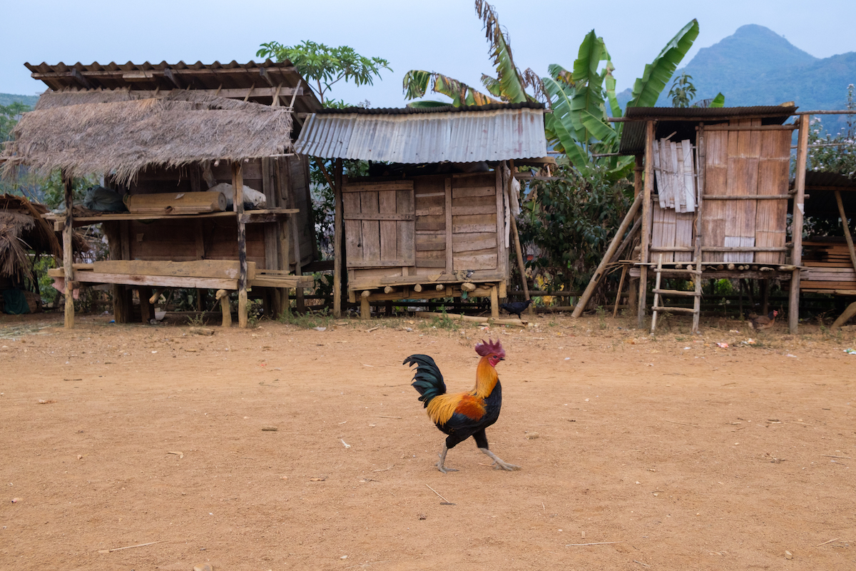 Rooster strutting across the village.