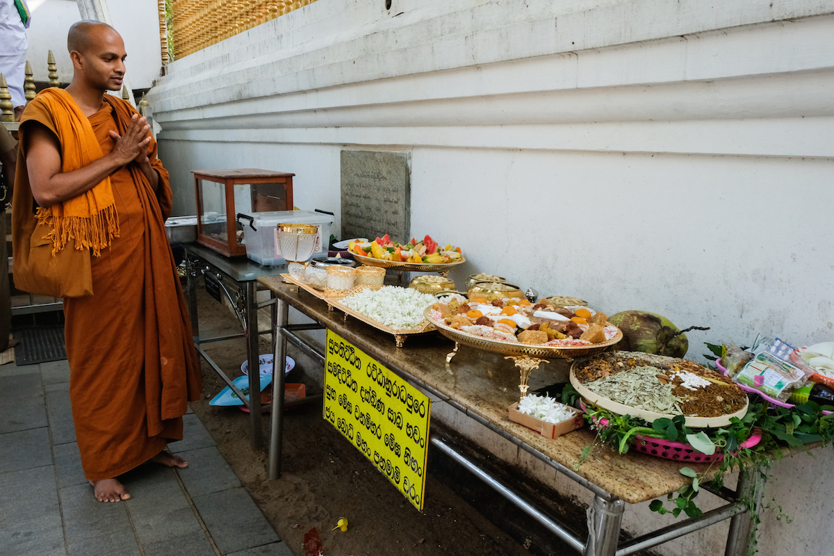 Sri Maha Bodhi offering January 8, 2018 1200 × 800 A lady asked me to take this photo of the monk with her offering.